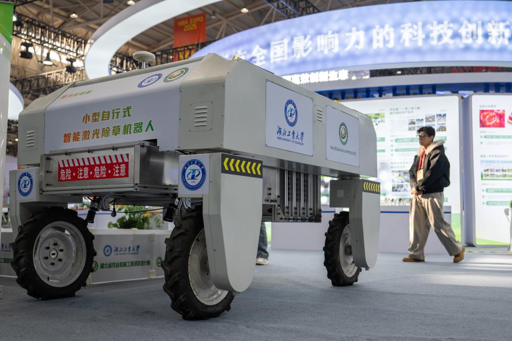 科技賦能不僅體現在糧食生産端,更滲透到農業全産業鏈。激光除草機器人定向識別除殺雜草,果園智能採摘機高效完成果實采收,農用大型無人機精準噴施農藥……參展企業展示的“硬核科技”,正加速推動農業生産向智能化、規模化轉型。