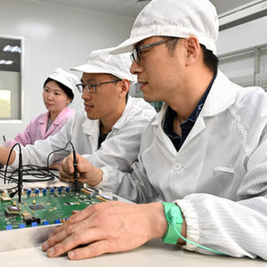 在合肥市瑶海区的中国网谷,一家电子科技公司的员工在智慧显示屏生产线上作业(2023年11月16日摄)。新华社发(解琛摄)