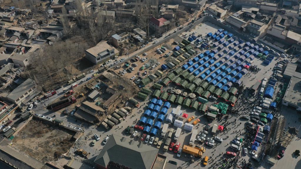 一顶顶帐篷已经成为受灾群众寒冬里的“避风港”,安置点不同位置的几口大锅里煮着热气腾腾的牛肉汤,受灾群众正在排队领取免费的爱心牛肉面,不远处的医疗救治点,有需要的人们在排队领取着感冒药品……条件虽然简陋,尽管面临困难,但大家有吃、有住、有医……互助和团结的气氛让人暂时忘却了寒冷,来自四面八方的救援人员、医务人员和志愿者们用自己的坚守和奉献,将温情传递到安置点的每一个角落。