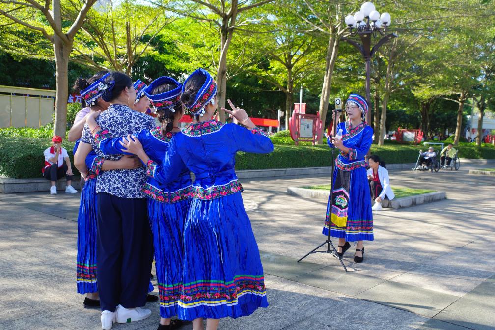 “大家都是晚上湊在一起排練,儘管很辛苦,但大家都很有衝勁,所以這更像是一個盛會,而不是一個比賽,我們向游客們展現天等人的能歌善舞和精神面貌。”天等縣東平鎮參賽隊總導演陳貴平説。