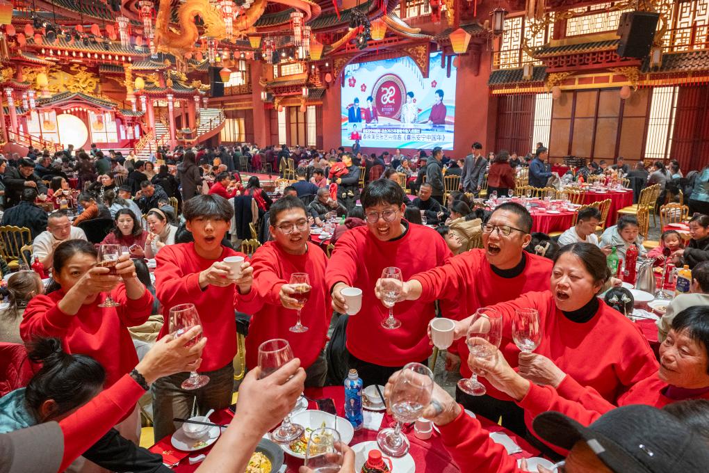 1月28日,人們在安徽省蕪湖市繁昌區一家酒店內享用團圓飯。新華社發(肖本祥攝)