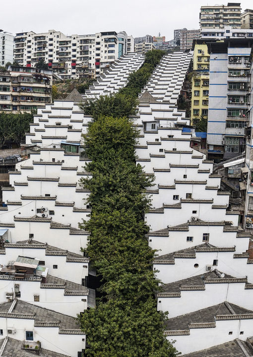 很多樓房建在不可思議的地方。一些陡峭的山坡上,會突然聳起數十層的樓房。為了幫助人們爬坡,城裏修建了數不清的梯坎。梯坎將山坡、樓房以及穿插其中的道路相連,令奉節擁有一種獨特的立體感與層次感。