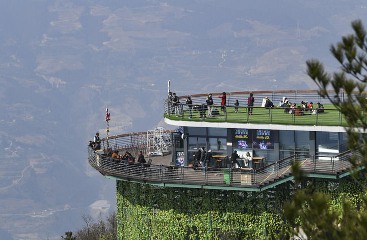 游客在重慶奉節三峽之巔風景區游覽(2024年3月11日攝)。新華社記者 王全超 攝