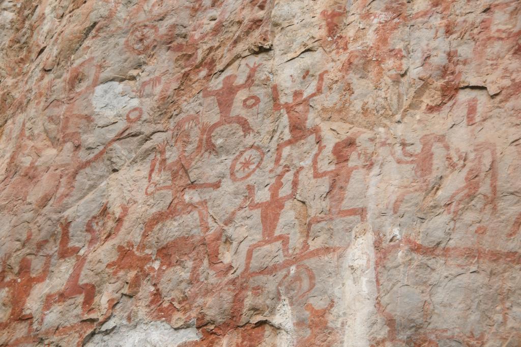 景區講解員介紹,花山岩畫面積8000多平方米,有各種圖像1900多個,創作於戰國至東漢時期,距今已有兩千多年的歷史。2016年被列入《世界遺産名錄》,填補了中國岩畫類世界遺産空白。