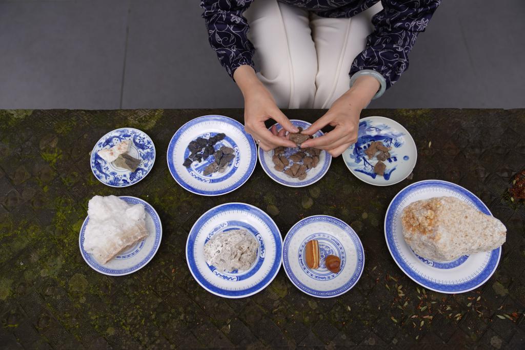 2023年4月19日,在江西景德鎮,蔡文娟在“青花故事”創作基地挑選原礦料。新華社記者 周密 攝