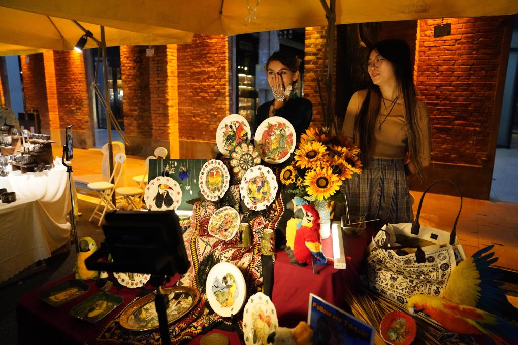 兩名女孩在景德鎮陶溪川春秋大集上銷售創意瓷器(2023年10月17日攝)。新華社記者 周密 攝