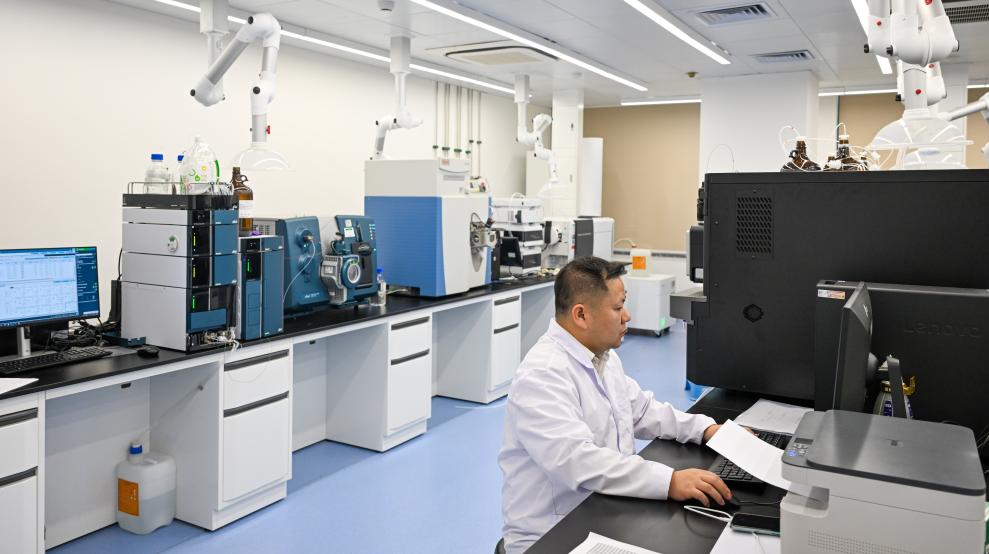 封關運作,保障國門安全尤為重要。在海口海關技術中心實驗室,工作人員在實驗室內忙碌不停,該實驗室於2025年1月投入使用,主要承擔海南口岸海關執法技術保障職責,檢驗檢測領域覆蓋食品、化粧品、紡織品及其製品等27個大類。