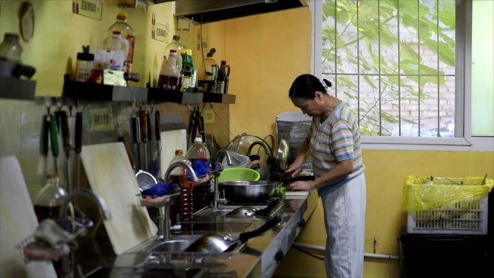 正午時分,廚房的“管家”徐亞君也忙個不停。從蒸飯、取面到為來者登記、菜品歸置等,她都得一一打理。“每天平均有40個家庭來這裡做飯,我就是打下手,承包所有的雜活,確保大家都能好好地做頓飯。”