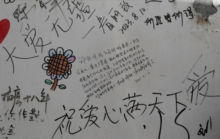 時節已過立秋,但氣溫仍然很高。烈日當空,將廚房門口的留言板照得發亮,斑駁的漢字記錄着許多病患家屬的肺腑之言。“很多在西安長期住院的外地人,真的很需要這個廚房,患者家屬在一起也可以互相鼓勵、安慰。加油,許凱;加油,所有人。”