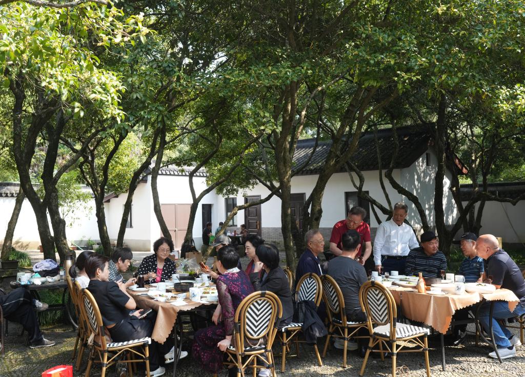 游客坐在滿覺隴的桂花樹下用餐。新華社記者 翁忻旸 攝