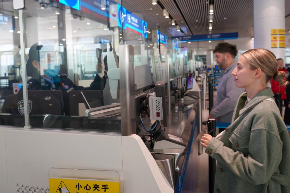 旅客正在辦理通關手續。新華社發