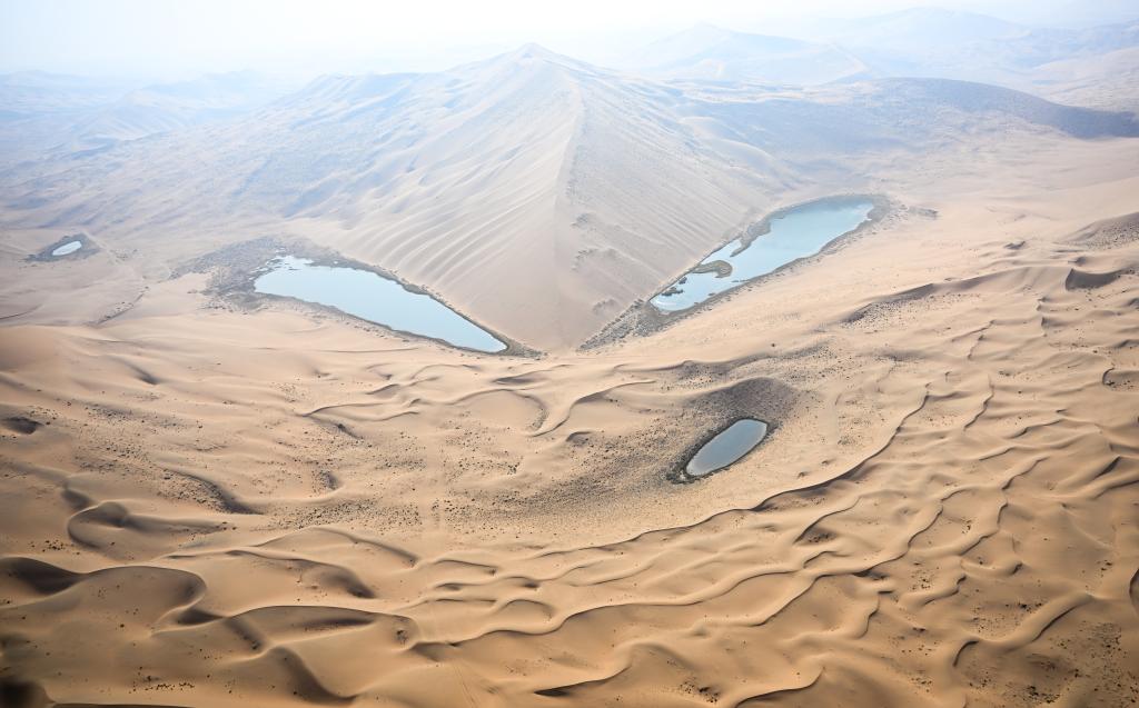 阿拉善巴丹吉林沙漠世界自然遺産保護中心聯合文旅部門,在保護沙漠生態的同時,讓游客盡情領略壯美的大漠風光。內蒙古巴丹吉林旅游開發有限公司總經理那日蘇説,今年推出了多款旅游産品,游客可以乘直升機、滑翔傘從高空俯瞰沙漠,還可以乘駝游巴丹、徒步游巴丹,能從不同角度領略沙山、鳴沙、群湖的魅力。