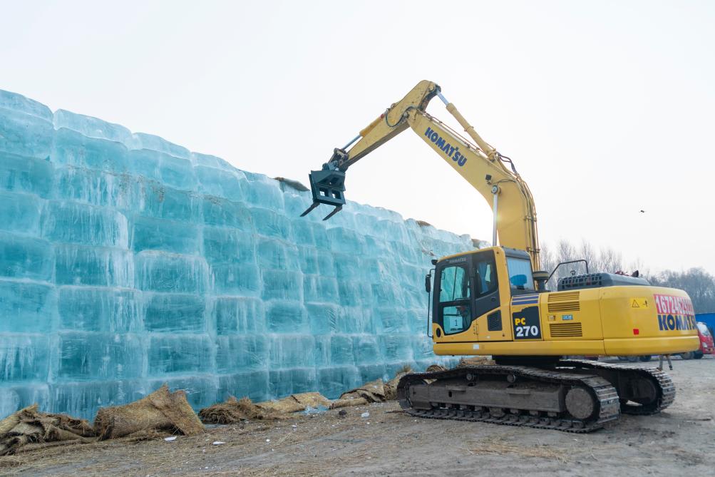 隨着第一輛滿載冰塊的卡車駛出存冰場,新一屆冰雪大世界的冰建建設工作也即將拉開帷幕。