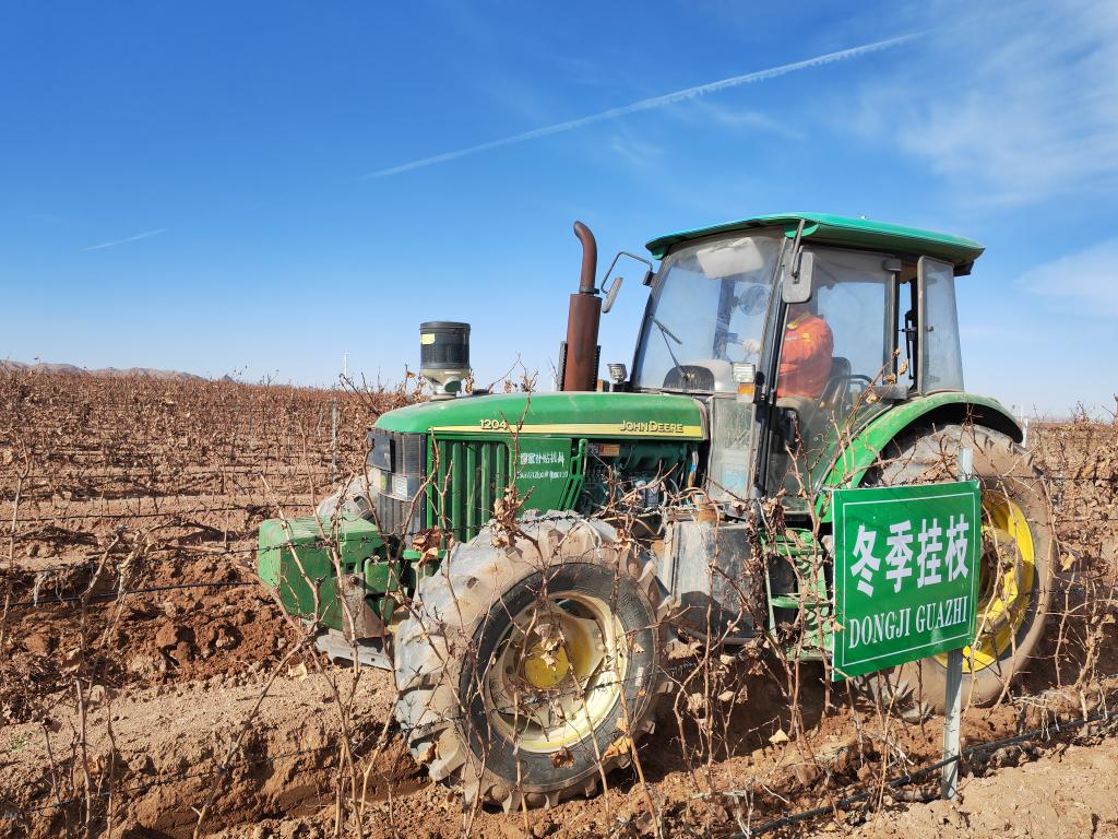 11月19日,在位於賀蘭山東麓青銅峽産區的西班酒莊葡萄種植基地,工作人員駕駛農機進行翻土作業。新華社記者 劉海 攝