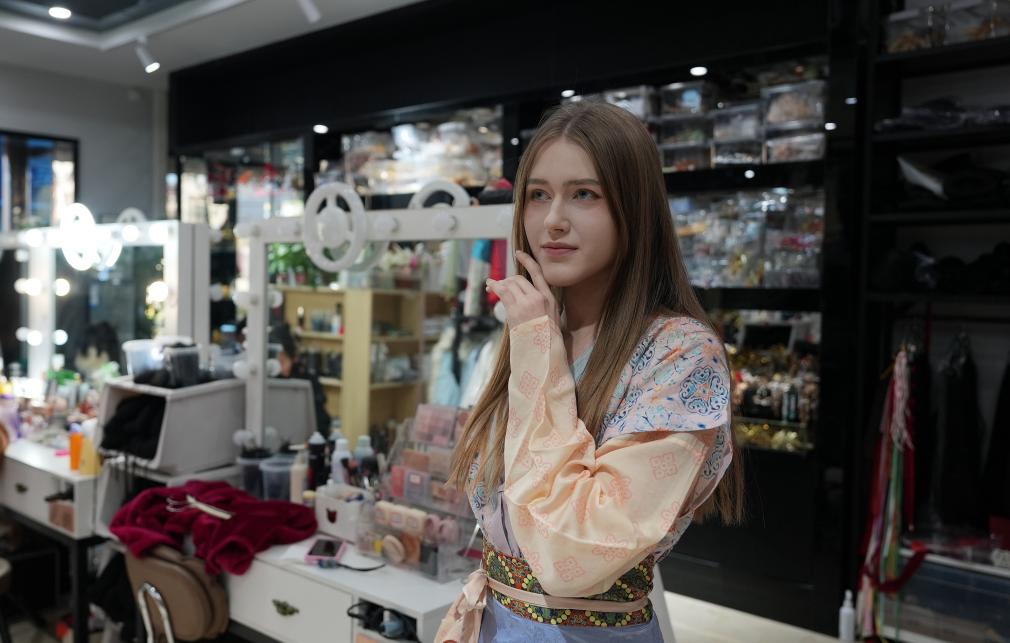 “我很喜歡中國文化,漢服不僅是一種服裝,更是一種觸摸文化的方式。”阿娜斯塔西婭告訴記者,她2023年來到洛陽生活,正在努力學習中文,“我日常也會看些中國的歷史劇,劇中演員的服飾讓我印象深刻”。