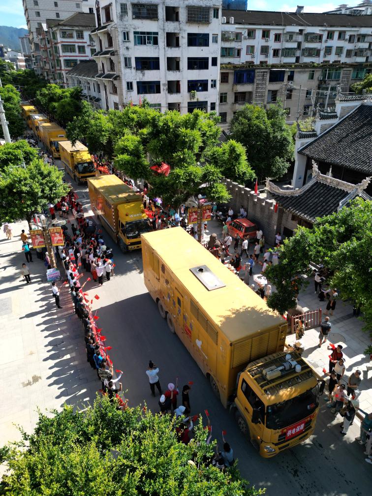 7月3日,晨光微露。洪水退去後的榕江十里長街,兩旁早已擠滿了前來送別救援隊伍的鄉親。