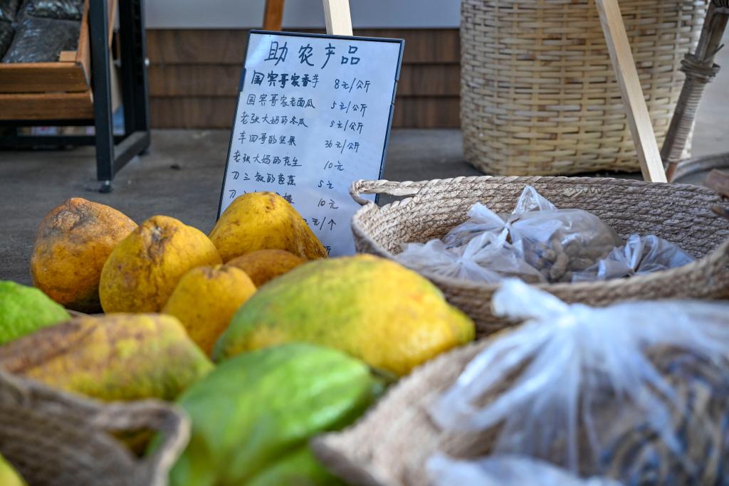村民們在大渡崗鄉“熱土工作室”寄售的農産品。