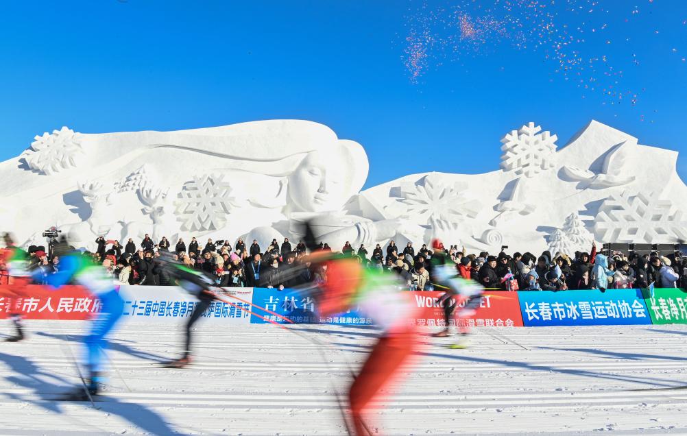 2025年1月4日,觀眾在現場觀賽。當日,第23屆中國長春凈月潭瓦薩國際滑雪節在長春凈月潭國家森林公園開幕。