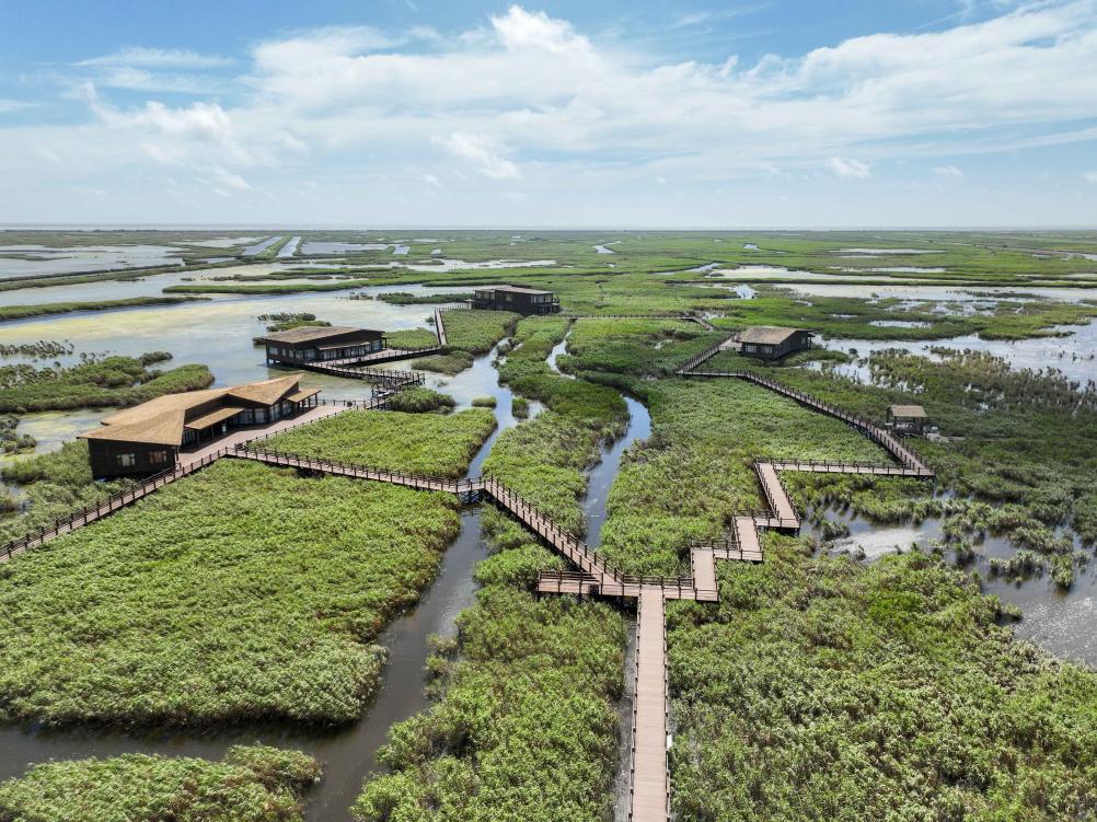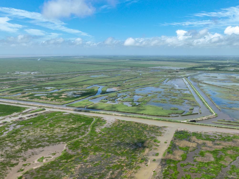 俯瞰上海崇明東灘鳥類國家級自然保護區(2024年7月24日攝,無人機照片)。