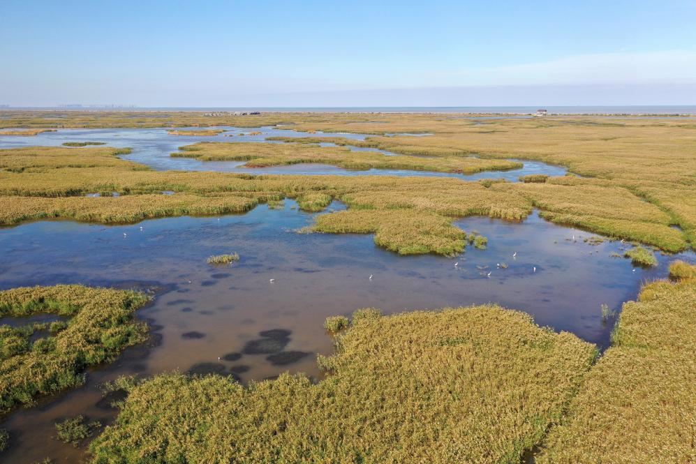 俯瞰上海崇明東灘鳥類國家級自然保護區(2020年10月25日攝,無人機照片)。