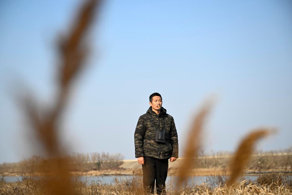 金偉國徒弟尹洪超在上海崇明東灘鳥類國家級自然保護區觀察候鳥。(2026年1月23日攝)。