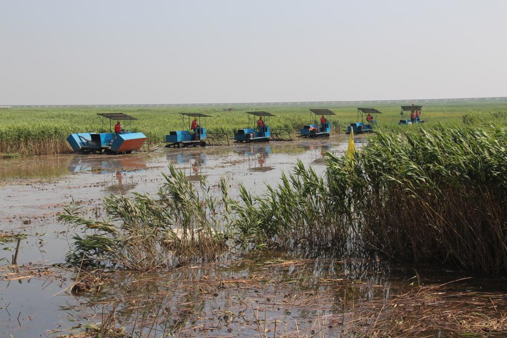 互花米草刈割場景(2016年7月4日攝,無人機照片)。