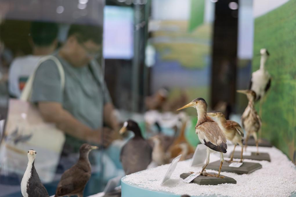 這是陳列在上海崇明東灘鳥類國家級自然保護區科普教育基地展館內的鳥類標本(2024年7月24日攝)。