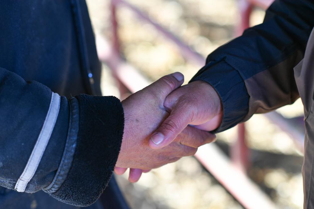 隨着議價聲落定,馬軍再次使勁地握起賣家的手,然後給選中的牛涂上標記,隨即&&貨運裝車。“農牧民滿意、買家滿意,我們也能獲取收益。”他説,“交易達成,三方共贏。”高峰期的交易日,馬軍一天就能出手100多頭牛,交易額近百萬元。