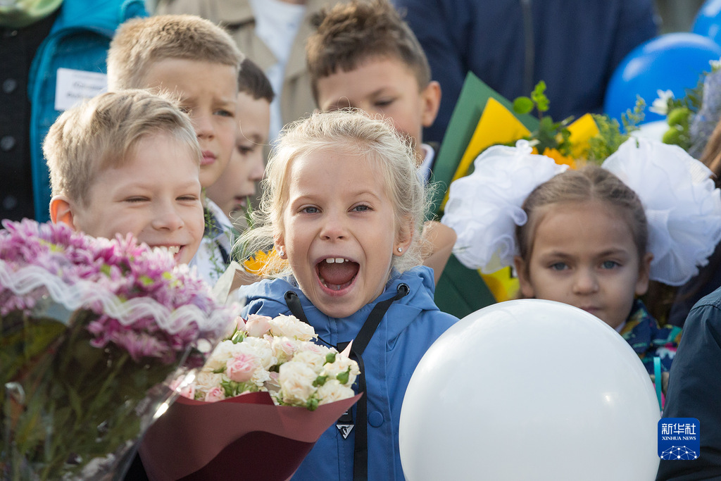 9月1日,俄羅斯聖彼得堡一所學校的學生們參加開學日活動。