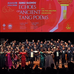 “唐詩的迴響”新春音樂會7日晚在美國紐約林肯中心舉行。中國常駐聯合國代表張軍、第77屆聯大主席克勒希、中國駐紐約總領事黃屏、聯合國高級官員、近40個國家常駐聯合國使節以及紐約各界人士約700人觀看了演出。新華社記者 李睿 攝
