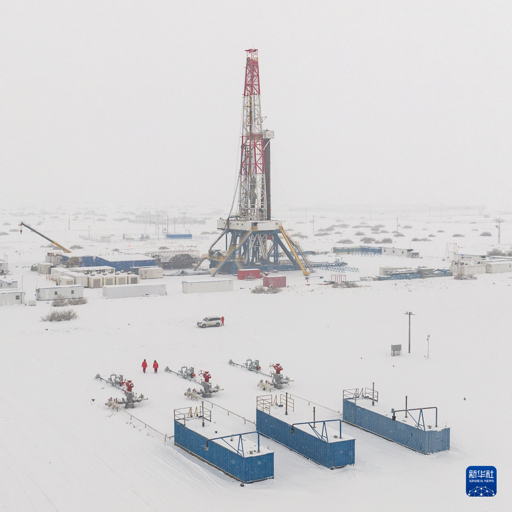 這是1月20日拍攝的吉慶油田一處鑽井現場(無人機照片)。