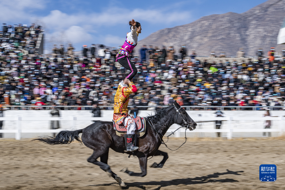 每年藏曆新年初三,在拉薩賽馬場舉辦馬術表演已成為當地慶祝新年的傳統,深受廣大群眾喜愛。騎手們英姿颯爽,為觀眾們帶來騎馬拾哈達、騎馬射箭等精彩表演。
