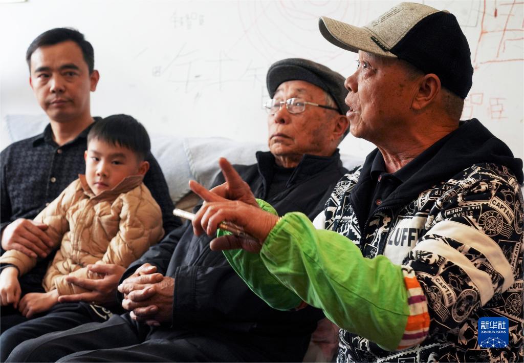 3月29日,錢建平(右一)在向記者介紹父親與二胡結緣的經歷。