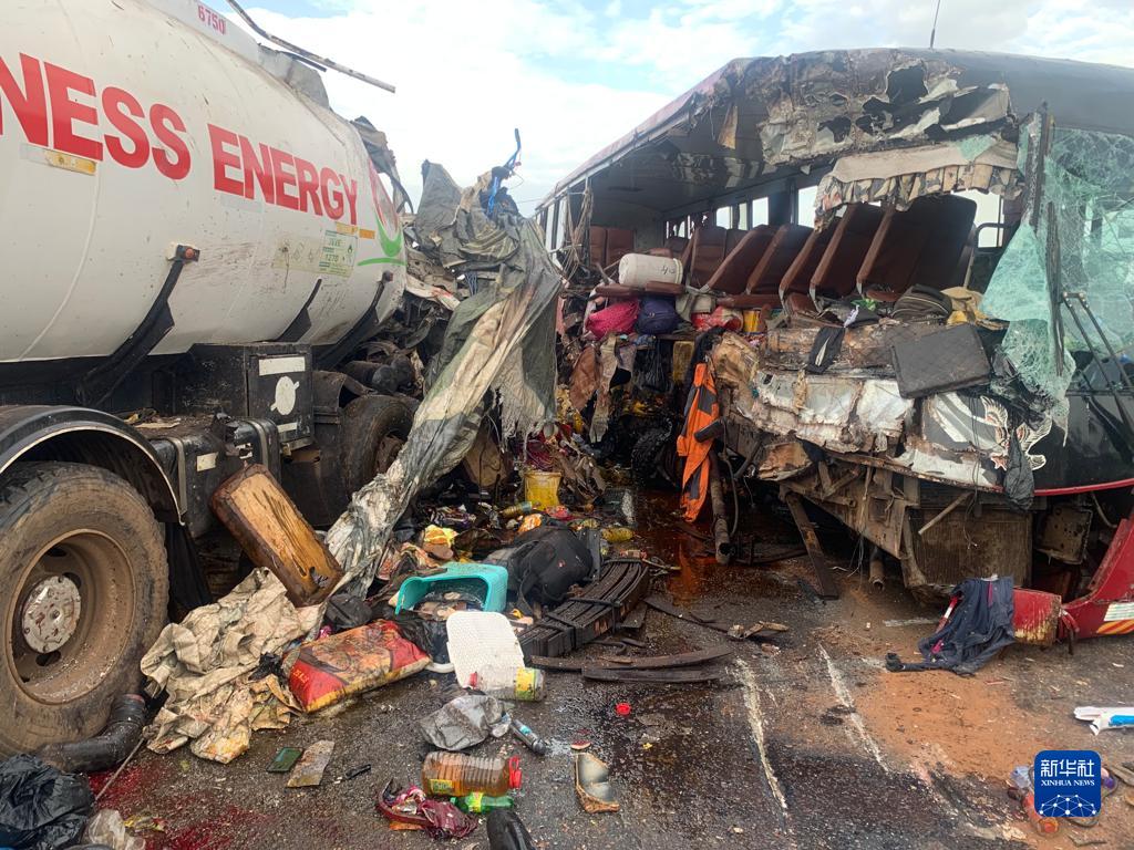 加納應急管理部門30日説,一輛大客車當日在加納中部省一條高速公路上與一輛油罐車相撞,造成至少16人死亡、多人受重傷。新華社發