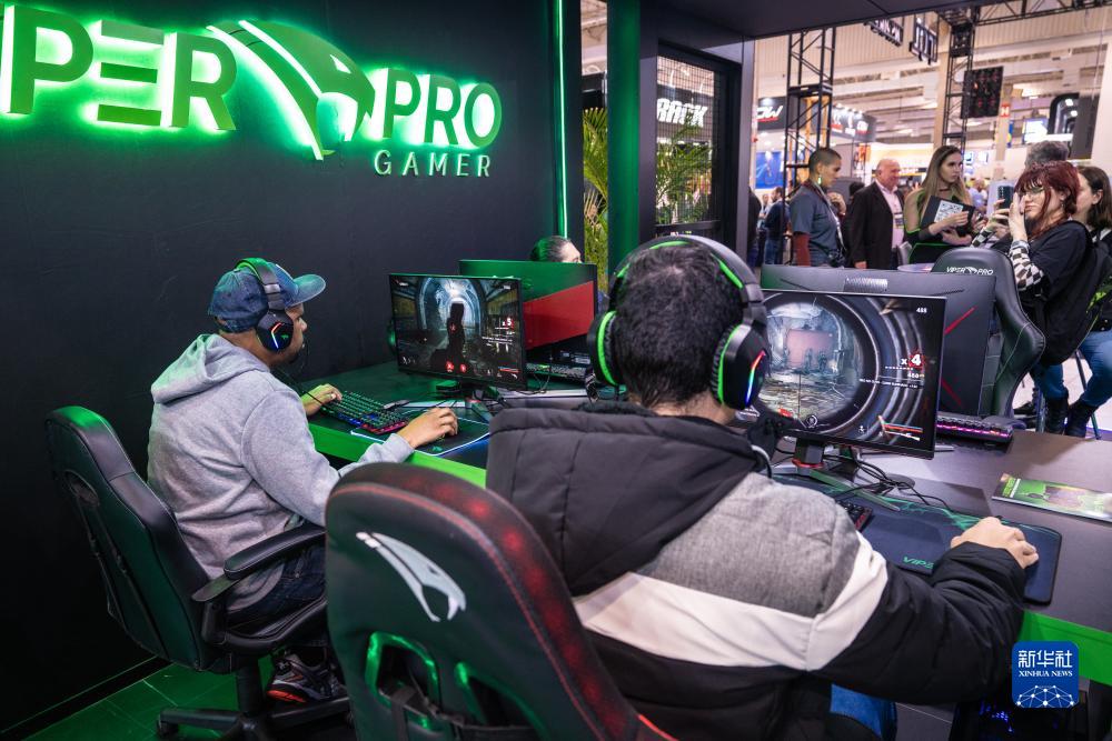 7月10日,在巴西聖保羅舉行的國際消費類電子及家用電器産品展覽會上,參觀者體驗電子游戲設備。