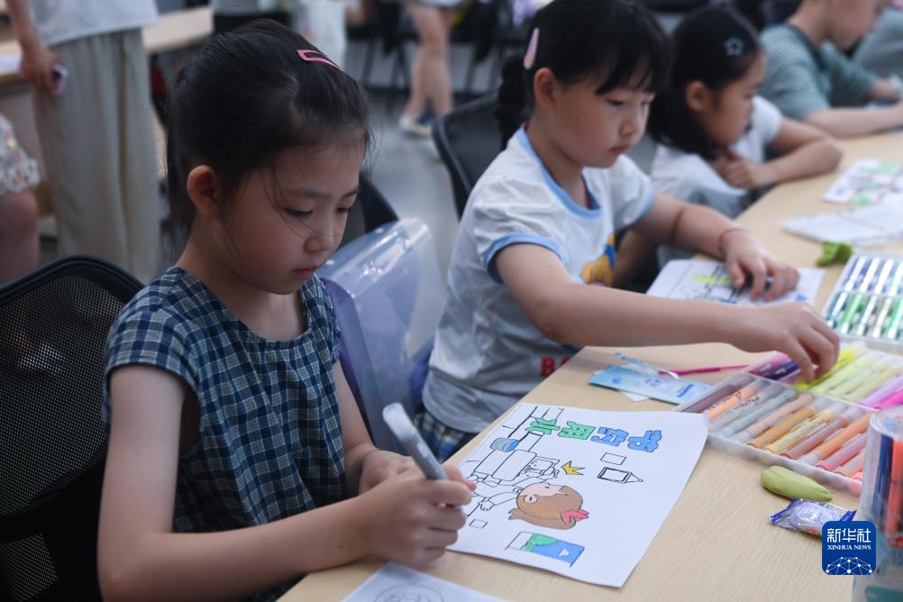 7月11日,小朋友們在浙江省湖州市吳興區龍泉街道祥和社區參加低碳主題繪畫活動。
