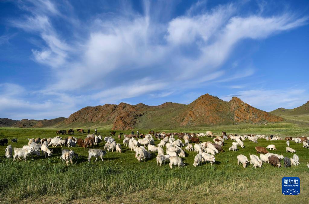 羊群流連於轉場途中豐美的水草(7月3日攝)。
