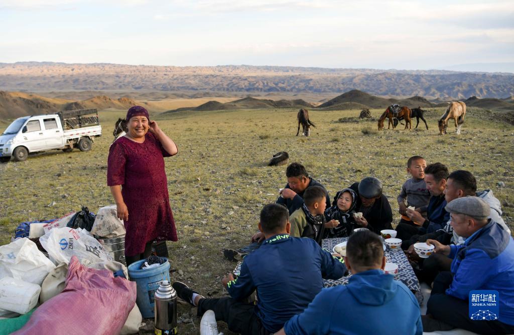 轉場隊伍抵達第一天的露宿營地後,巴哈提(左)帶着物品和當日晚餐如約趕到(7月3日攝)。