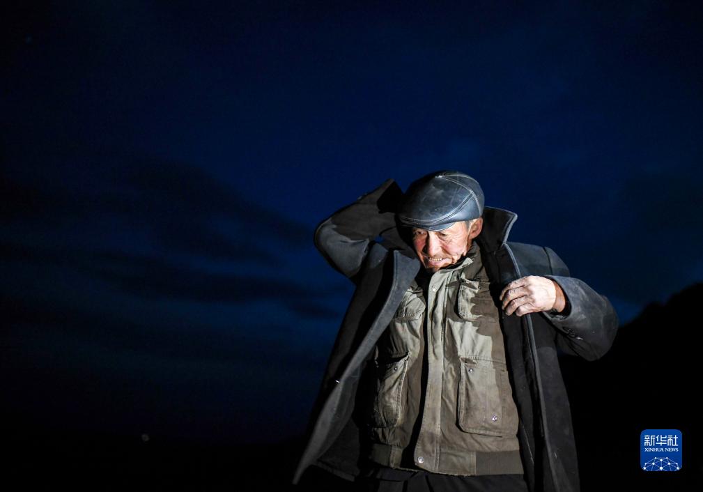 深夜,氣溫降至13度左右,哈布得拉什麼又加了一件衣服禦寒(7月3日攝)。