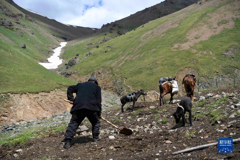 到達夏牧場後,哈布得拉什麼在清理羊圈(7月3日攝)。