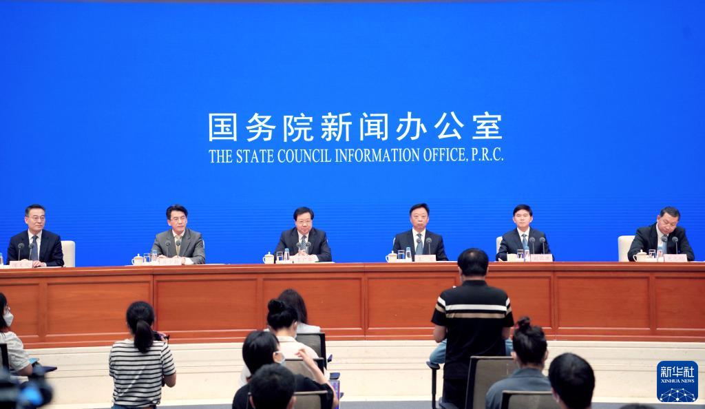 7月11日,國務院新聞辦公室在北京舉行“權威部門話開局”系列主題新聞發布會,請自然資源部部長、國家自然資源總督察王廣華,自然資源部副部長、國家海洋局局長王宏,自然資源部副部長莊少勤,自然資源部副部長劉國洪,國家林業和草原局局長、國家公園管理局局長關志鷗介紹建設人與自然和諧共生的現代化有關情況,並答記者問。新華社記者 潘旭 攝