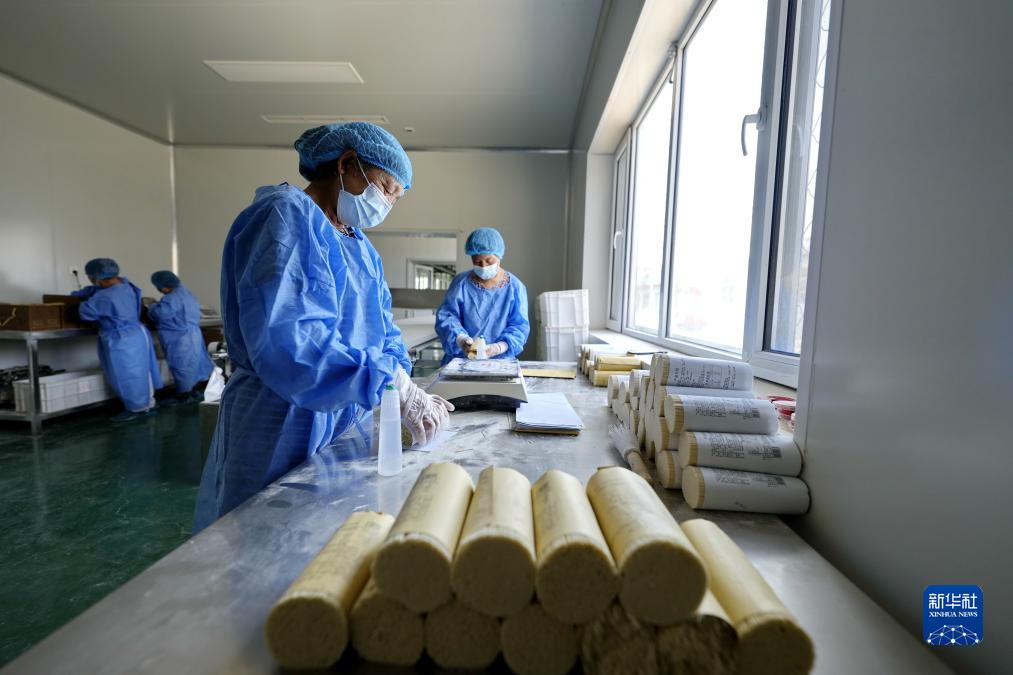 7月11日,河北省遷安市野雞坨鎮丁莊子村一家食品生産企業的工人在包裝空心掛麵。