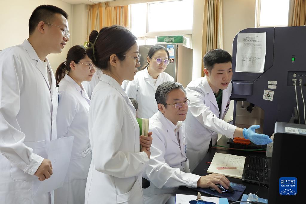 6月30日,黃曉軍(右二)在北京大學血液病研究所指導學生做實驗。