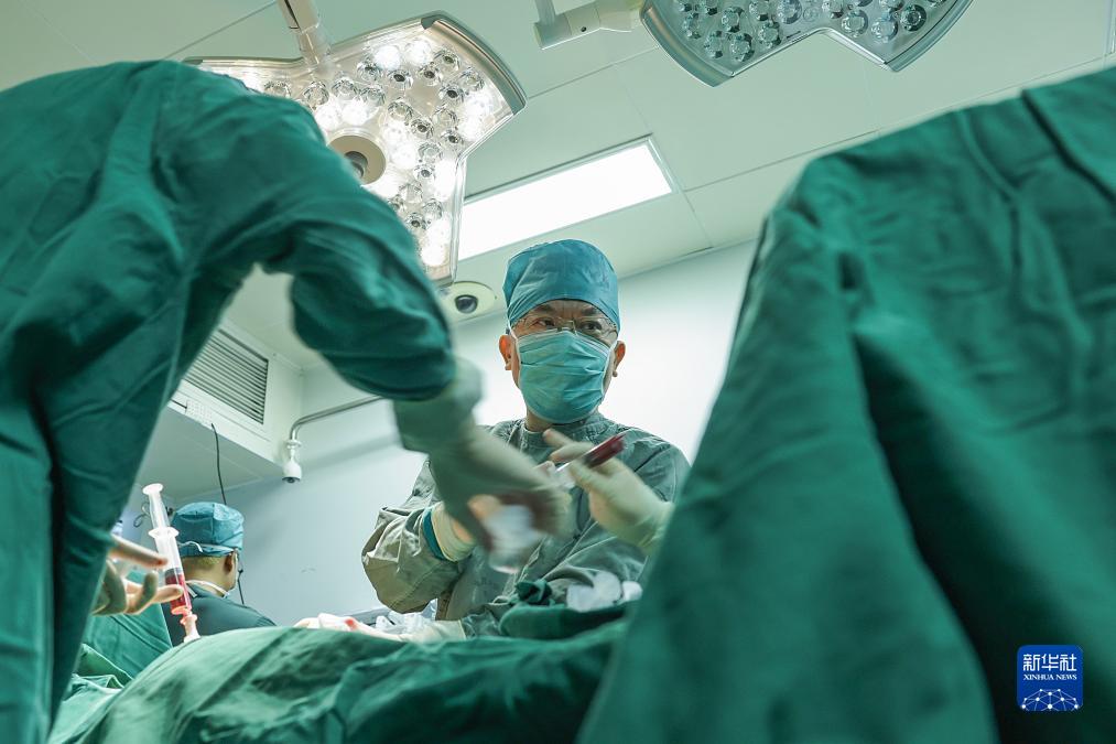 7月6日,黃曉軍在北京大學人民醫院手術室採集供者的骨髓幹細胞。