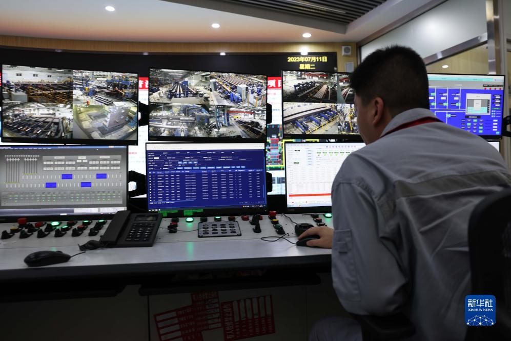 7月11日,在承德市鷹手營子礦區一家無縫鋼管生産企業,工作人員在集控中心工作。
