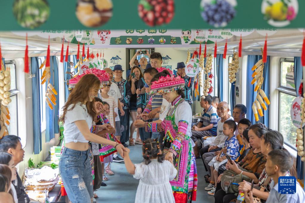 暑運以來,中國鐵路成都局集團有限公司重慶客運段在貴州往返重慶的5630/5629次普速列車上打造主題文化車廂,增設“列車集市”和非遺大舞&,在助農增收的同時,滿足旅客暑期多元化出行需求。旅客乘坐該趟列車,不僅可欣賞沿途各地的風景,還能在列車上逛“集市”、看非遺表演,體驗別樣旅途時光。
