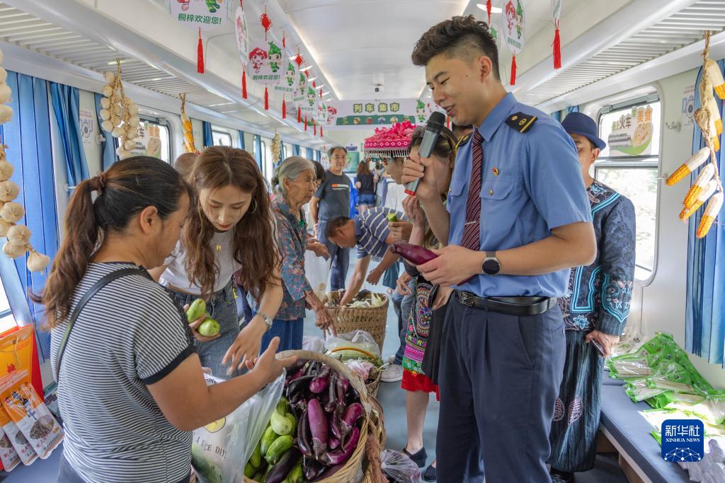 暑運以來,中國鐵路成都局集團有限公司重慶客運段在貴州往返重慶的5630/5629次普速列車上打造主題文化車廂,增設“列車集市”和非遺大舞&,在助農增收的同時,滿足旅客暑期多元化出行需求。旅客乘坐該趟列車,不僅可欣賞沿途各地的風景,還能在列車上逛“集市”、看非遺表演,體驗別樣旅途時光。