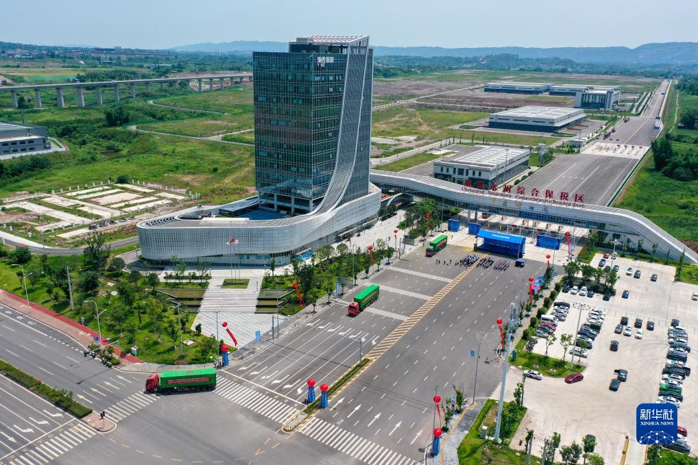 7月11日,重慶永川綜合保稅區首貨出區暨長城汽車KD件出口始發車順利發車(無人機照片)。