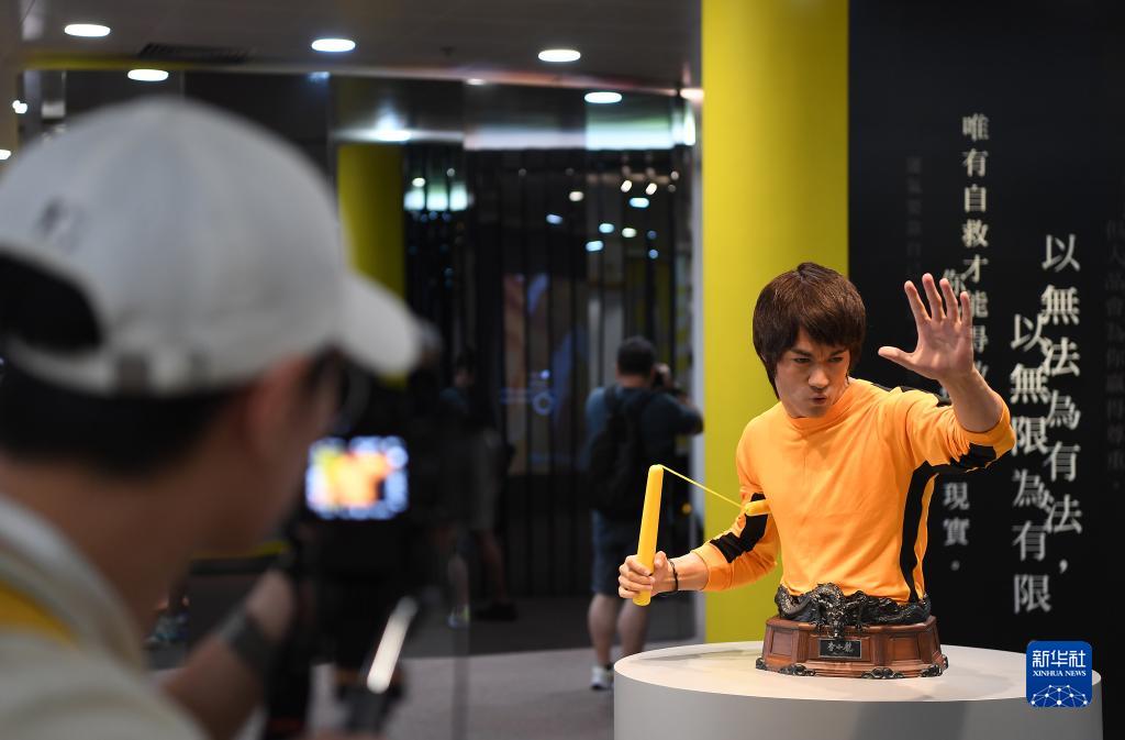 7月11日,媒體記者在香港文化博物館“李小龍——經典永續”展覽上拍攝。