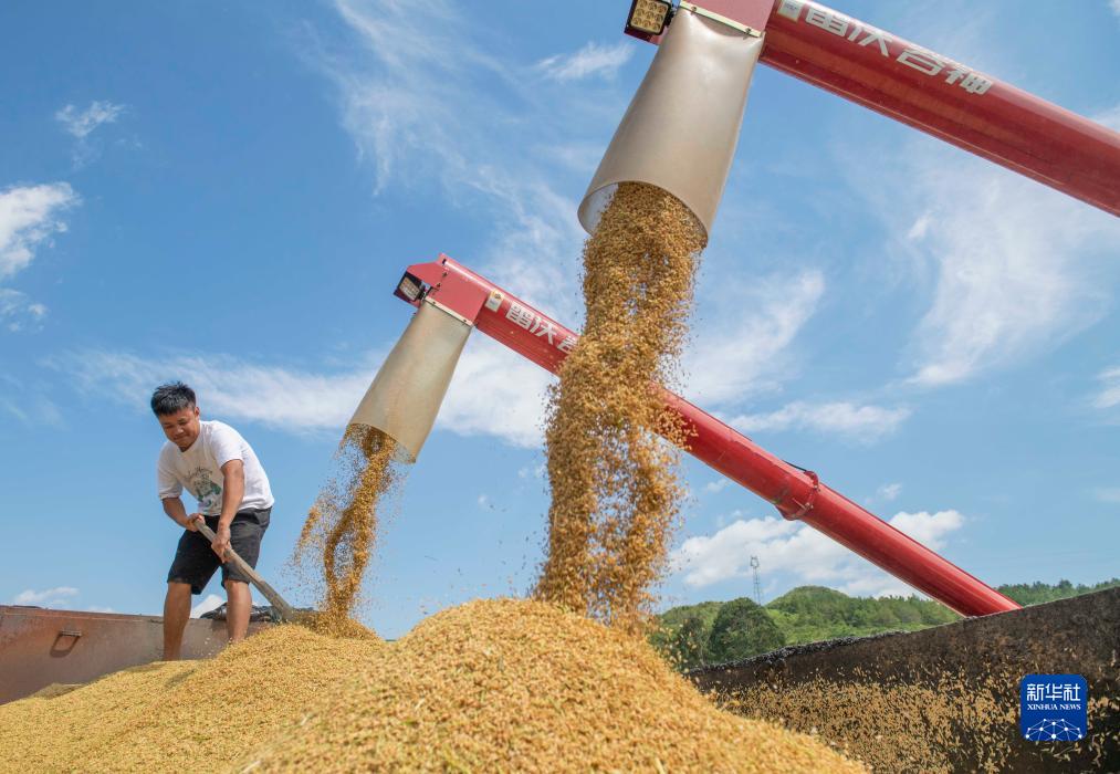 盛夏時節,湖南省多地進入一年當中最繁忙的“雙搶”季節,農民們冒着酷暑搶收早稻、搶插晚稻,為全年糧食豐産打下基礎。新華社發(蔣克青 攝)